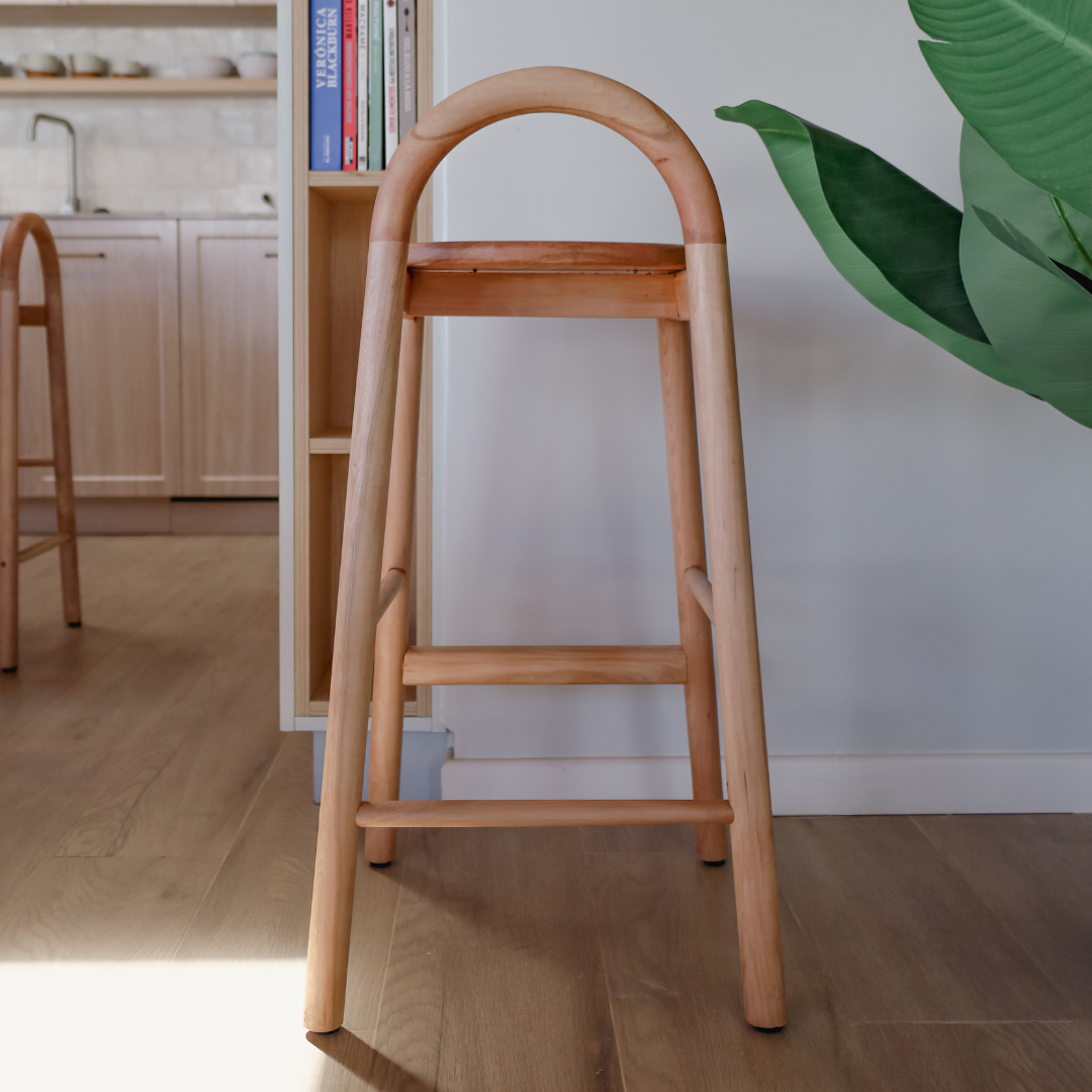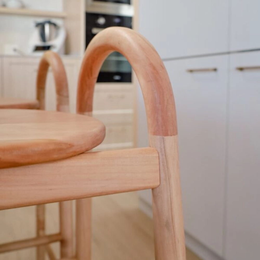 Taburete o silla/bar de madera 100% Lenga con un diseño exclusivo, en donde todas sus curvas son las protagonistas.